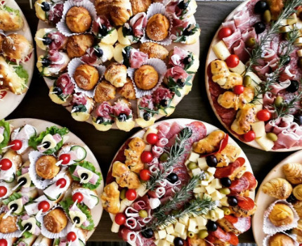 Raznovrsni zalogaji: mini sendviči, kiflice, kanapei, fišeci, rolnice, suhomesnati proizvodi, sirevi, slana peciva, proje, pite, u klasičnim, posnim i dečijim varijantama...