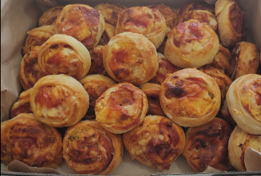 Neodoljiv pizza ukus. Pravimo ih od domaćeg testa i bogatog punjenja gauda sirom, šunkom, kečapom, maslinama. Deca ih obožavaju, ali odlične su i za druge razne prilike i proslave.