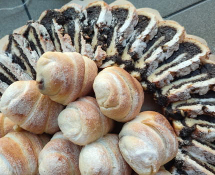 Obogatite vašu trpezu tradicionalnim ukusima iz naše ponude sa kombinacijom raznih vrsta slatkih kiflica, slatkih pita ili štrudli, po vašem izboru ili našoj preporuci, u odnosu na vrstu događaja i broj gostiju.